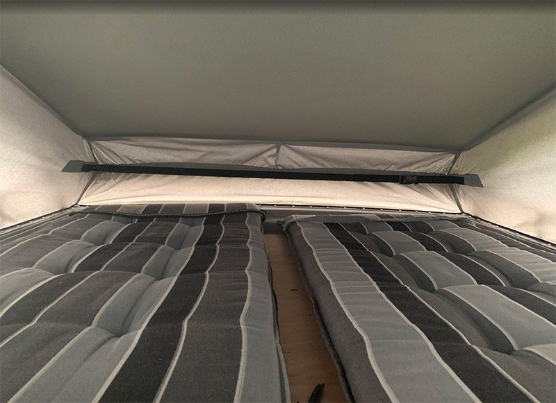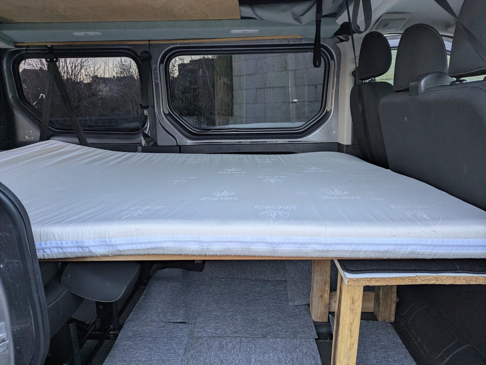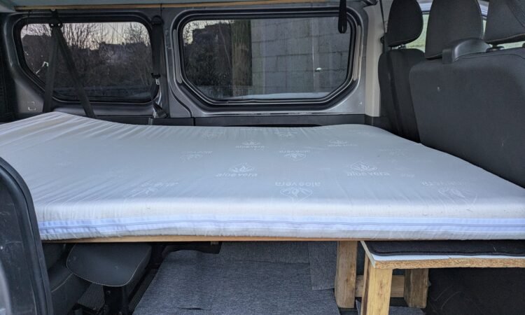 Couchages : 2 places adultes dans toit relevable (matelas aloe vera fourni) et possibilité de coucher 2 adultes à l’arrière avec un peu d’aménagement.