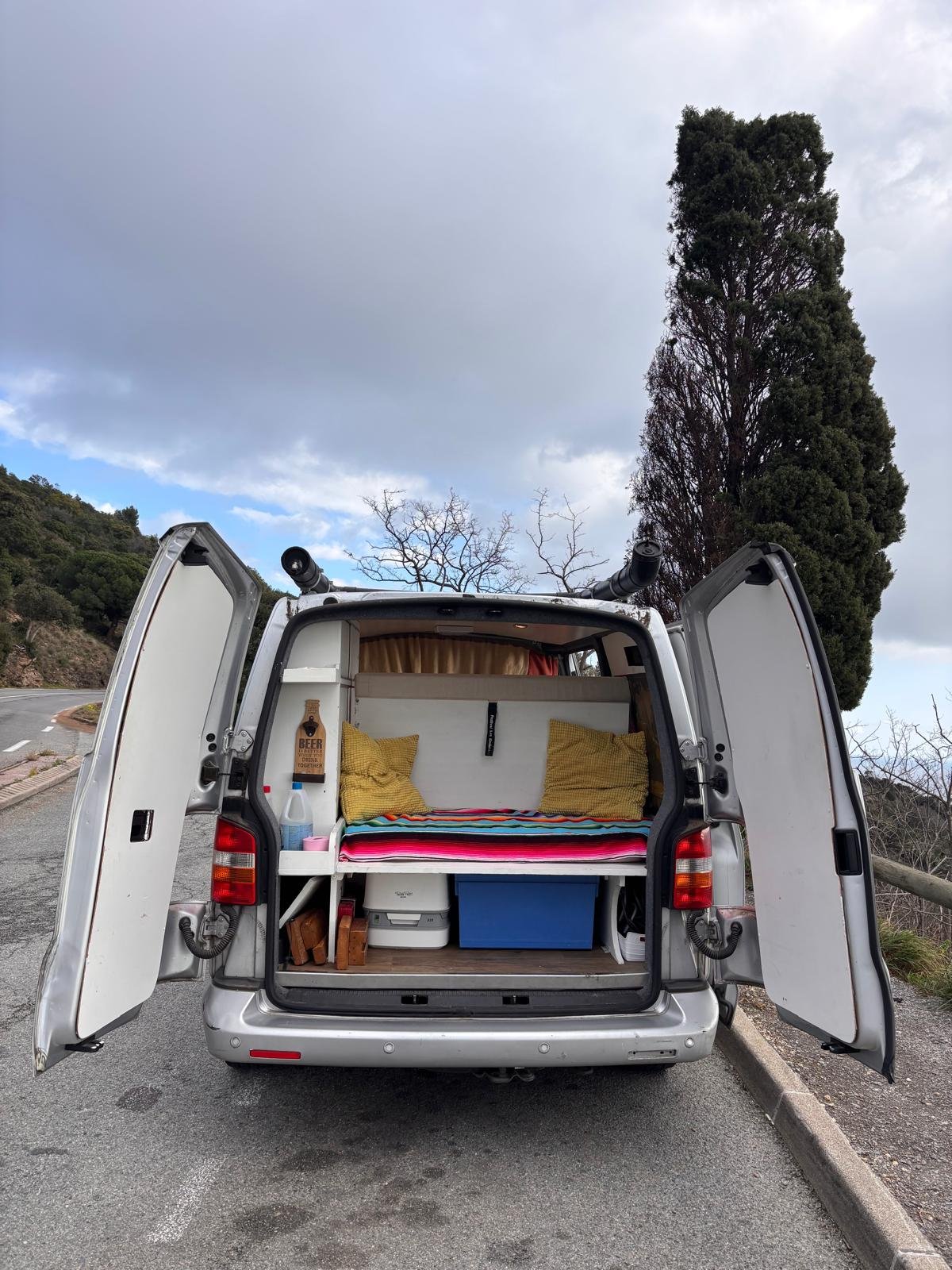 Je vends mon VW Transporter T5 aménagé par mes soins pour passer à un modèle plus grand et plus haut. Attention : il n’est pas homologué VASP. 2 places assises. Rapport d’inspection disponible (plus de 100 points de contrôles)